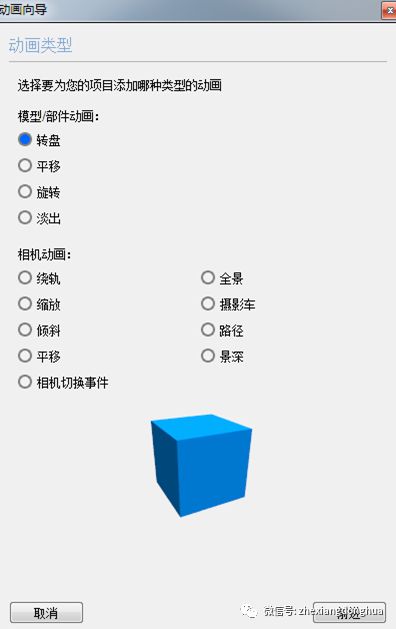 转盘动画主要围绕全局Y轴旋转模型/部件,想象一下将模型或部件放到转盘上,拍摄视频的时候将其旋转过来。选择转盘然后点击前进,再选择你想要加入到动画的模型或部件。