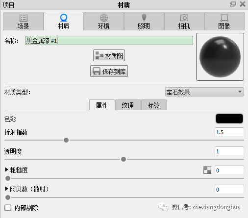 【折射指数】此滑块控制光线通过这个材质类型的部件时,会弯曲或“折射”的程度。大部分宝石折射率远比1.5高。可以设置为2以上的数值。