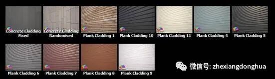 除了使用RailClone Color来随机化纹理,你还可以从渐变中选择纯色,或者使用5种转移模式中的一种来调剂位图。