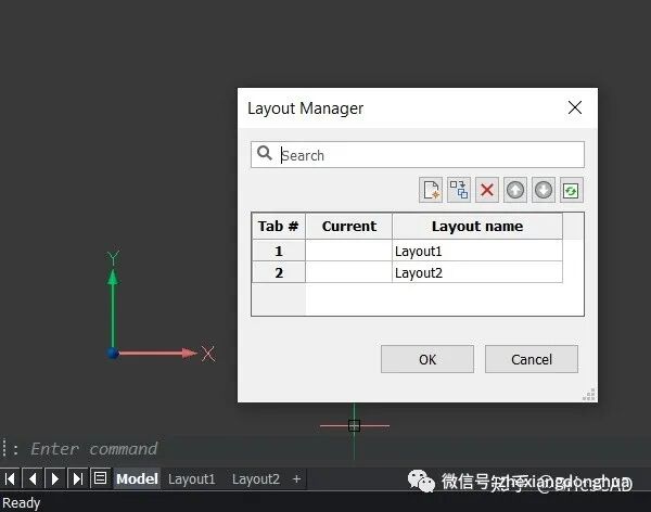 除了熟悉的在模型和布局选项卡之间点击切换的方法外,您还可以使用布局管理器。从模式选项卡左边的图标或使用LAYOUTMANAGER命令访问它。在布局管理器中,您可以轻松地添加、删除、安排布局或在布局之间切换。