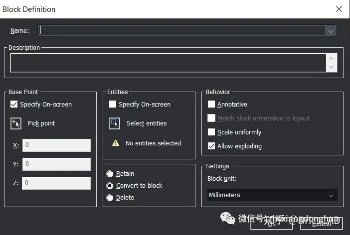 创建块定义或使用块命令访问块定义对话框,这操作方式与AutoCAD基本一致。