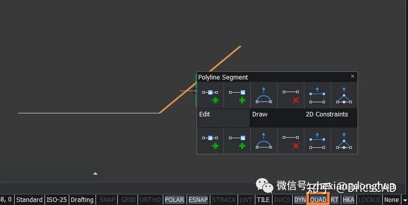 BricsCAD在明暗模式中的绘图环境。注意,浮动命令行和传统的停靠命令行选项在明暗模式下都可用。
