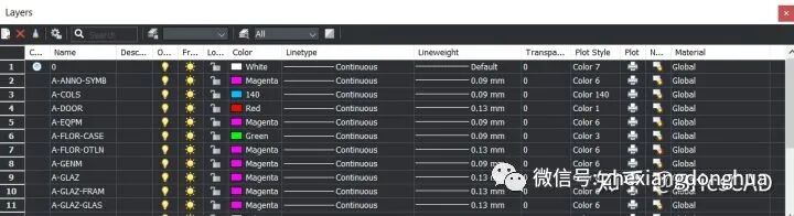 您可以在绘图资源管理器或单独的图层面板中查看、创建和修改图层,在您进行绘图工作时,图层面板可以保持打开状态。你可以通过ribbon的Home选项卡上的Layers工具或者图层(LA)命令打开Layers面板。