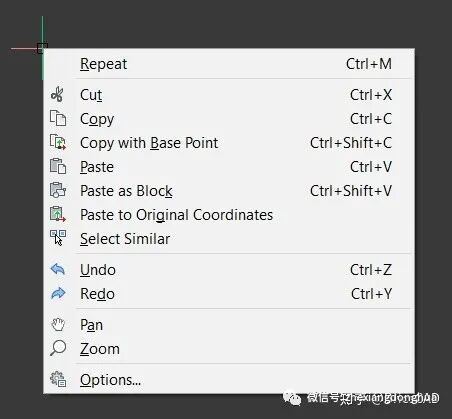 长时间按住鼠标右键按钮进入BricsCAD中的右键菜单