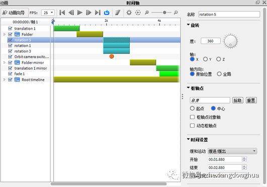 KeyShot动画通常在时间轴里表现,并且根据用于平移、旋转和相机动画的动画属性里设置的名称贴上标签。在时间轴里点击某个动画节点时,将显示动画属性。动画可以实时转移和交互式缩放,以控制时间和持续时间。动画分组可以在单一文件夹里合并,然后进行组织,这些文件夹同样可以缩放和转移,以控制时间和持续时间。