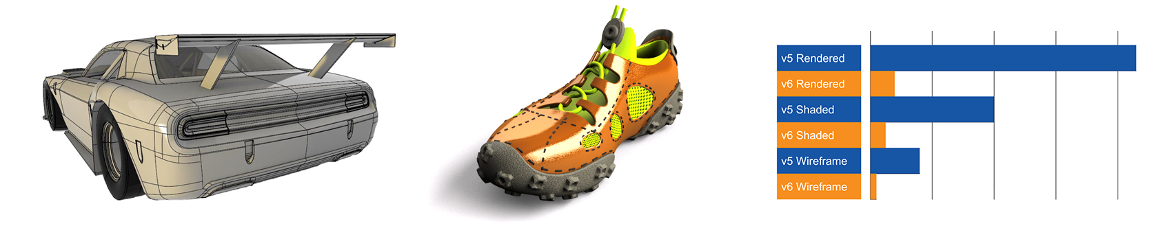 Rhino 最新的显示渲染管道计算更快、更稳定,并支持高级显卡硬件,比如 GPU 的敏感着色以及内存优化功能,因此,显示将减少特定的 GPU 的显示故障,使帧与帧之间连贯性更好更美观,即使是大模型也能够很好的显示,在一定条件下,显示速度能提高 300% ...