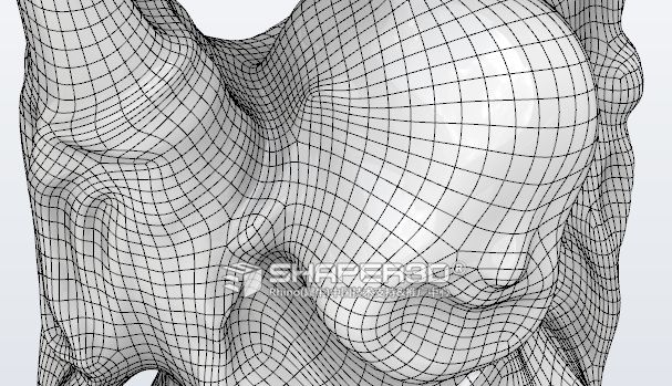 保险杠是左右对称的结构,因此在对称轴选项中选取 Y 方向作对称轴,以300面数运算出以下这结果: