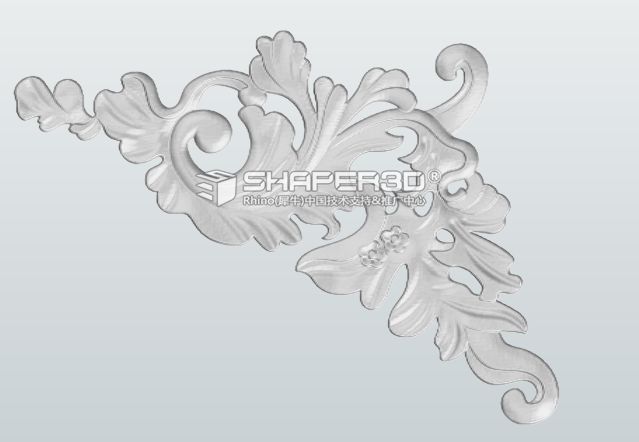 除了上述利用3D网格对象来创建外,在Rhino 中还可以利用灰度图转移成网格或曲面后,利用QuadRemesh 创建四边网格,借用下这张雕花灰度图来创建立体模型。