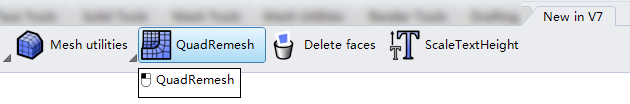 QuadRemesh 指令在哪里?开启Rhino 7 WIP 后,点开“New in V7”标签即可见。